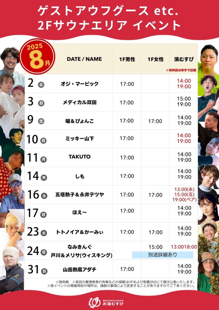 8月のイベント・アウフグースカレンダーが完成いたしました🔥