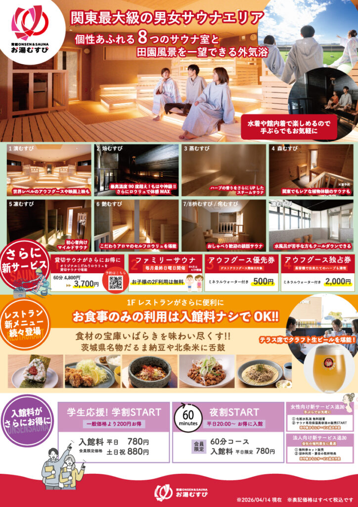 2Fサウナ・レストラン・入館料などで新たなサービスが開始となりました!